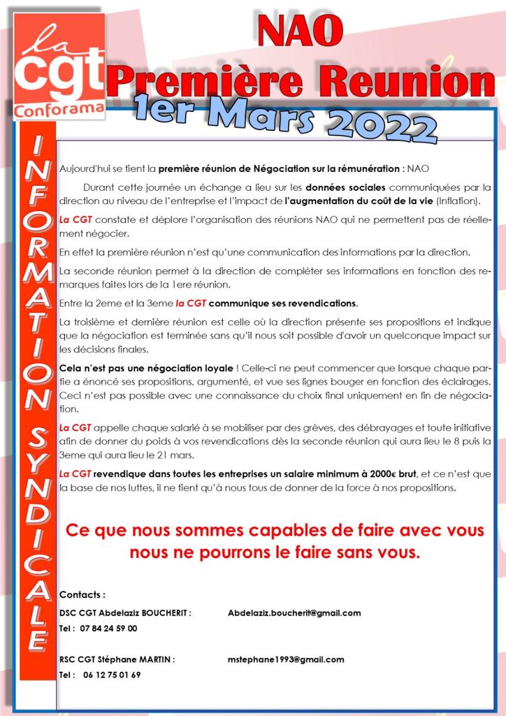 NAO 1 2022 NAONAO 1 2022 E-mail Facebook Compte Twitter LinkedIn Tumblr Reddit VK Pinterest A Propos de l’Auteur Derniers articles cgtconfo Liste Candidats Rhône Alpes 2024 19 octobre 2024 Liste Candidats Centre Val de Loire 19 octobre 2024 Liste Candidats Bretagne 2024 19 octobre 2024 Liste Candidats Grand EST 2024 19 octobre 2024 Liste Candidats Bourgogne Franche Comté 19 octobre 2024 Liste Candidats Logistique 2024 19 octobre 2024 Voir tous les articles dans %s cgtconfo Tu pourrais aussi aimer Réponses CGT NAO 2023 13 avril 2023 La direction doit revoir sa copie ! 18 avril 2022 Position CGT Nao 2022 18 avril 2022 Appel à la grève NAO 2023 20 février 2023 NAO Conforama : Revendications CGT 2023 20 février 2023 Questionnaire NAO 2024 14 mai 2024 SMIC mai 2022 18 avril 2022 Rebond des salaires ! 18 avril 2022 NAO 2024 : Un fiasco retentissant 13 juin 2024 Article précédent Bienvenue Article suivant Prime PEPA Laisser un commentaireAnnuler la réponseVotre adresse e-mail ne sera pas publiée. Les champs obligatoires sont indiqués avec *Commentaire * Nom * E-mail * Site web Enregistrer mon nom, mon e-mail et mon site dans le navigateur pour mon prochain commentaire. Loading...